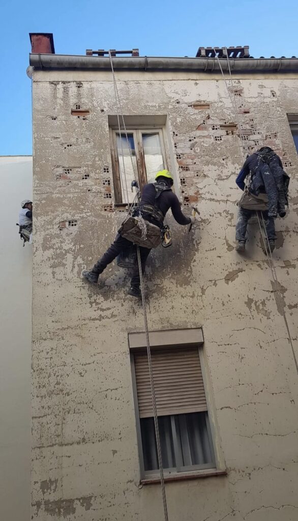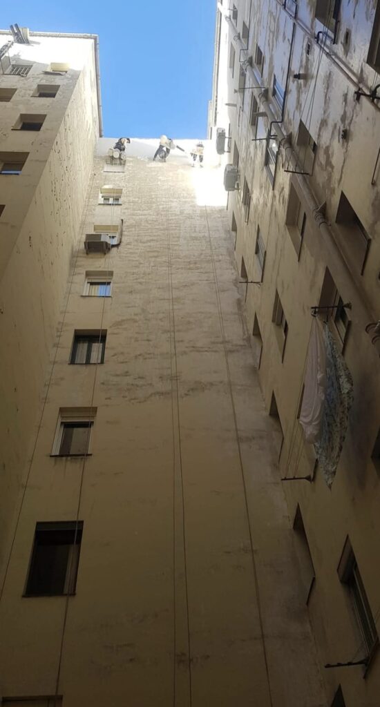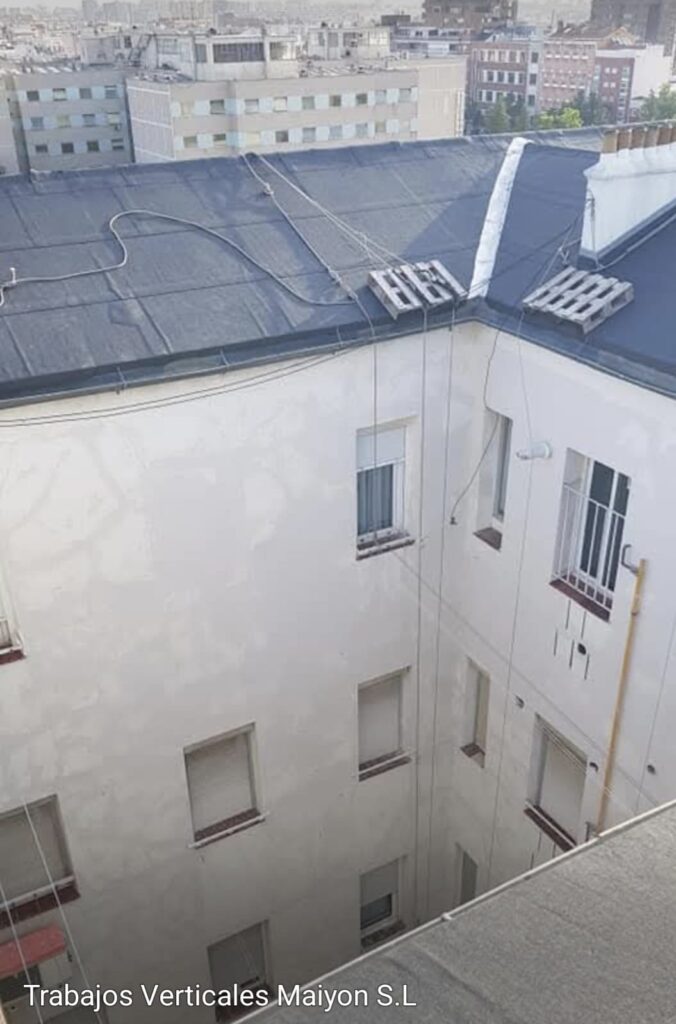 Fases de instalación del SATE para la rehabilitación de patios en Madrid